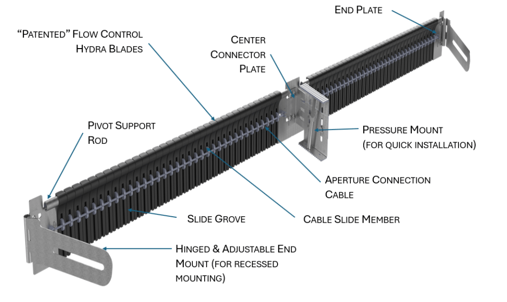 Blade deflection and responsiveness are controlled via the patented HYDRA® “Never Jam” Multi-Tensioning System, which allows field-adjustable tuning to meet site-specific hydraulic and debris load conditions.